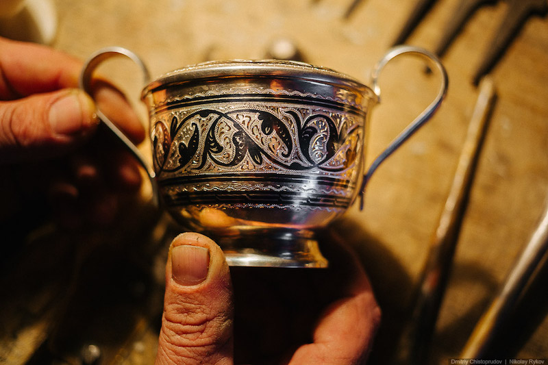 Для кубачинских изделий характерна чернь по серебру: гравирование выполняется короткими штихелями со специальной заточкой, а чернь, которая наносится впоследствии, представляет собой сплав из серебра, меди, свинца и серы. Чернь сочетается с резьбой, гравированным орнаментом, золочением и филигранью. Среди других техник распространена золотая насечка, когда мастера прокладывают по поверхности изделия золотую или серебряную проволоку в виде орнамента.
