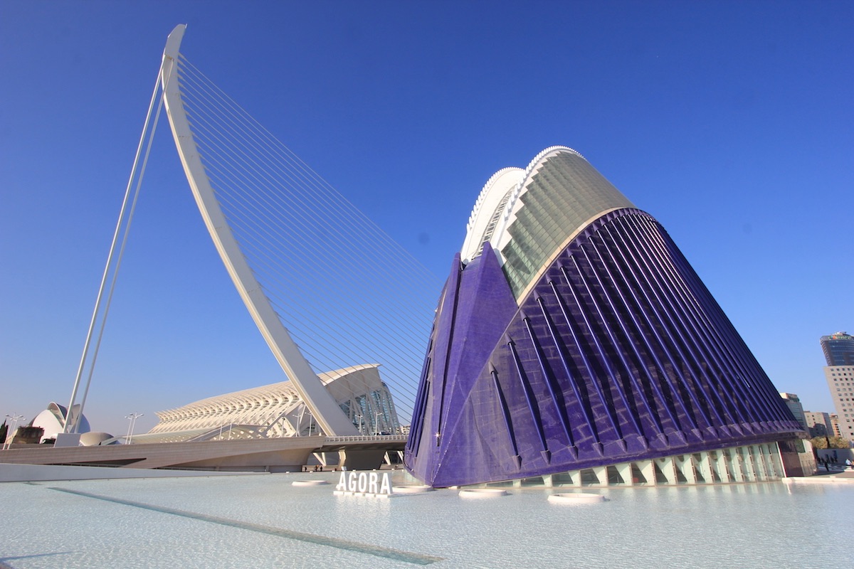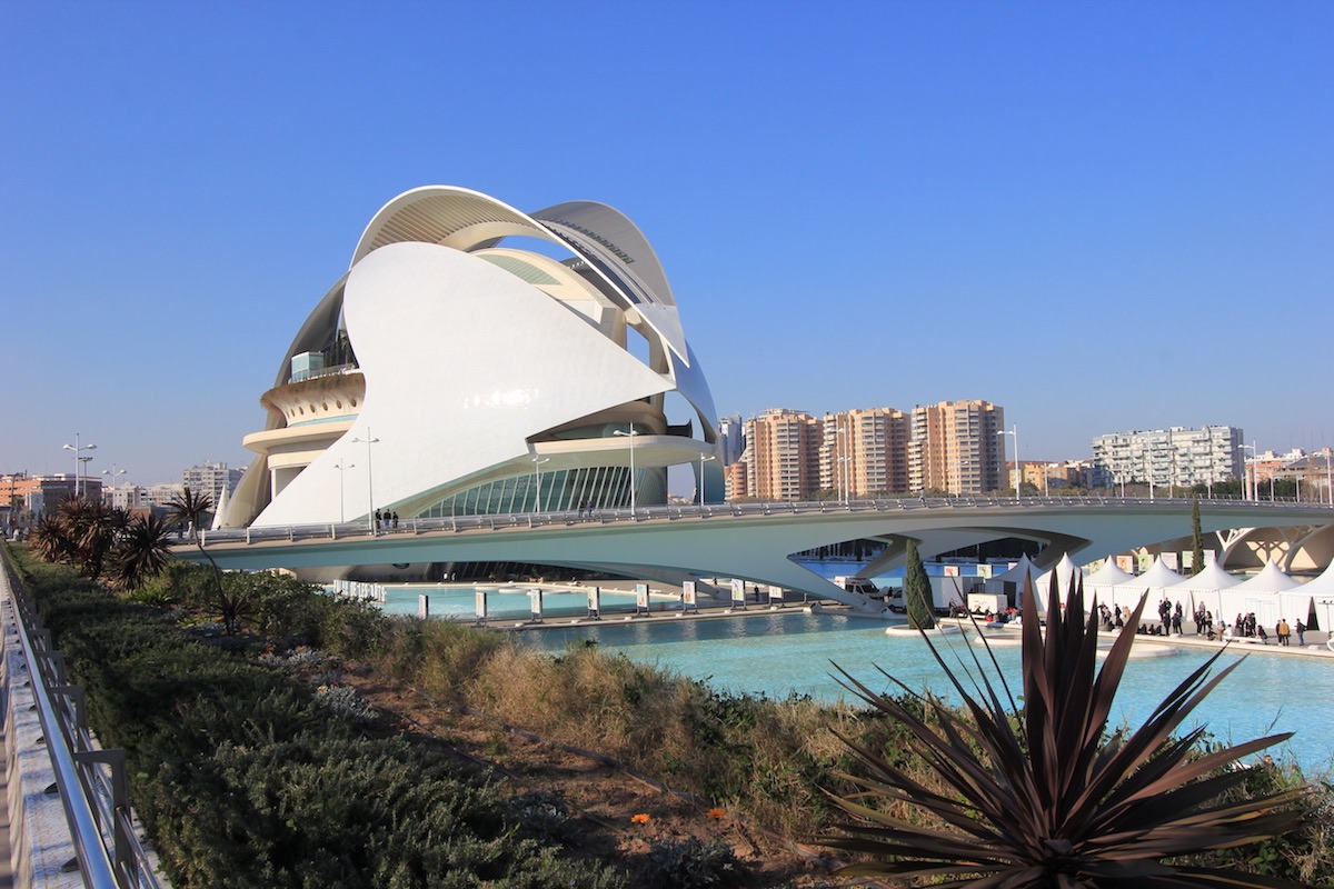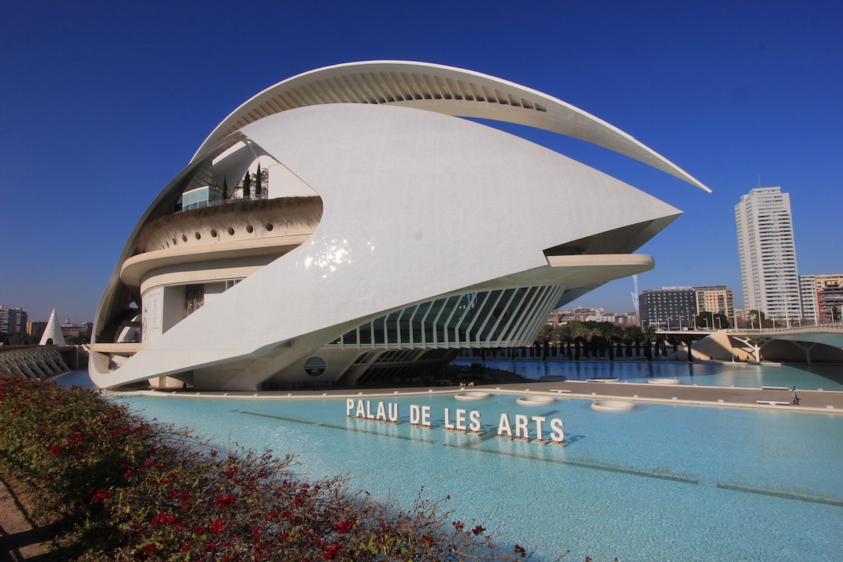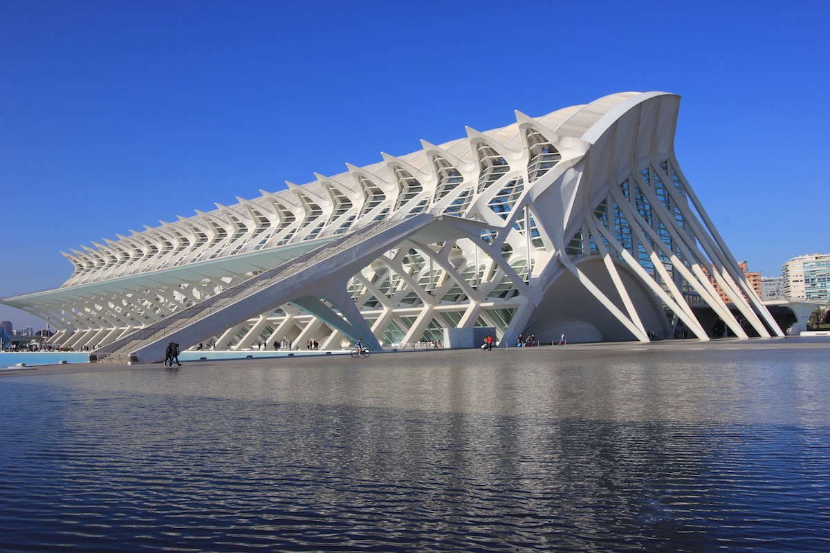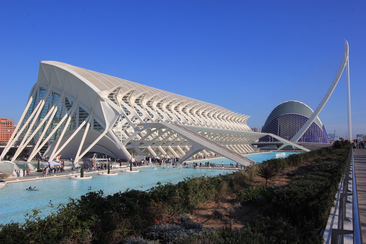 Наше знакомство с Валенсией началось с Города искусств и наук — уникального музейно-развлекательного комплекса в высушенном русле реки Турия, спроектированного архитекторами Сантьяго Калатравой и Феликсом Канделой.