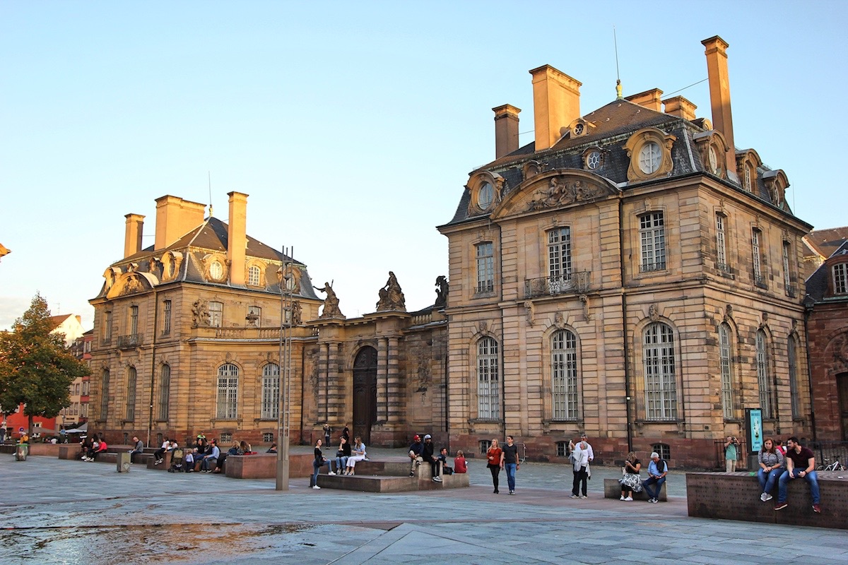 Напротив южного портала собора, на Замковой площади, находится дворец Рогана, построенный в 1732-42 годах по указанию кардинала Армана Гастона де Рогана. В его пышных покоях останавливались многие монаршие особы.