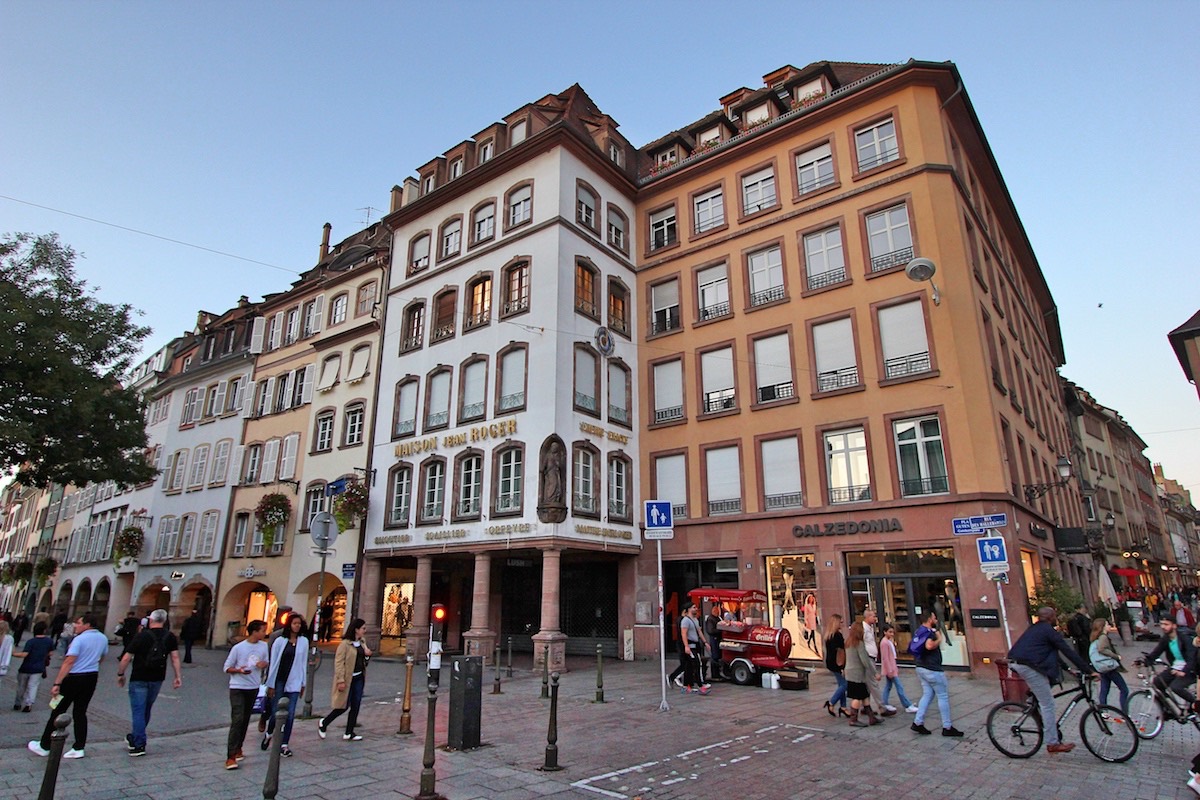 Улица больших аркад получила название от домов с аркадами, тянущихся от площади Гутенберга почти до площади Клебера. В декабре 2018 года здесь был совершён теракт, унесший жизнь пятерых человек.